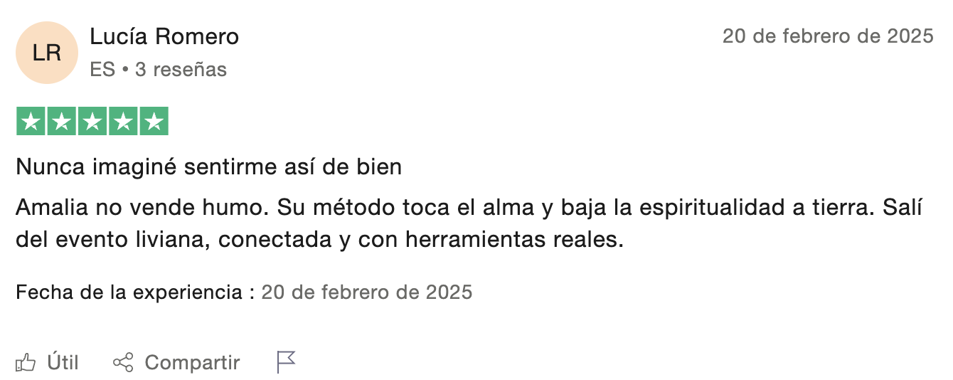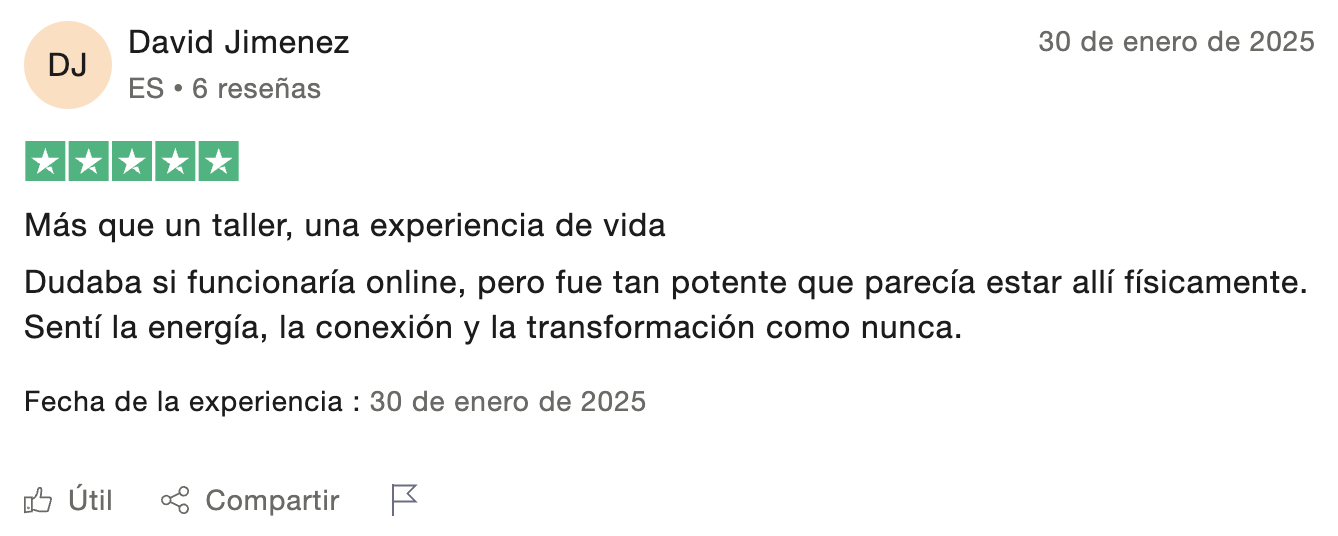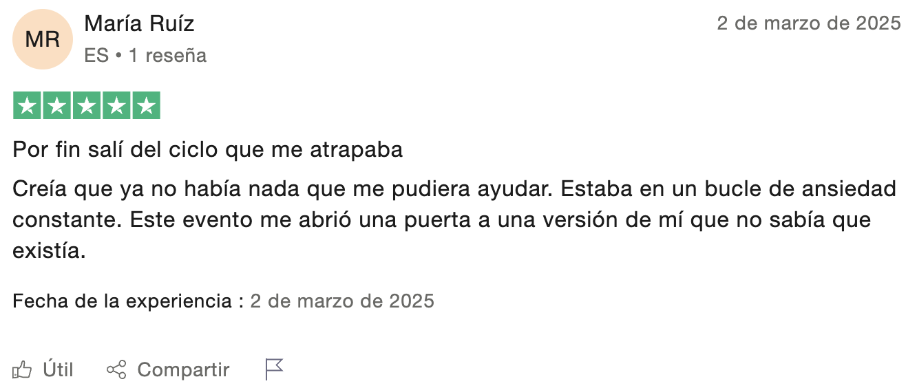 ¡No te preocupes! Es un evento intensivo de solo 3 horas en un solo día, donde vas a vivir una experiencia de alto impacto real, sin tener que pasar semanas haciendo módulos. En solo unas horas, vas a sentir el cambio en tu energía y tu claridad.